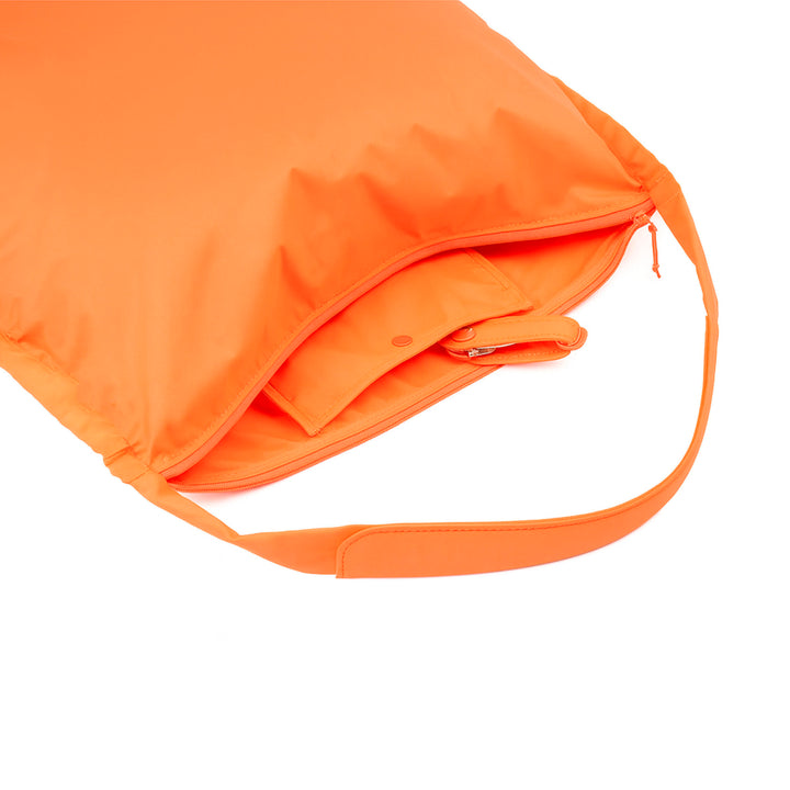 Con solo 80 gramos de peso, esta bolsa es ultraligera, pero no por eso frágil. Su exterior está fabricado con Versa Heal™ nylon reciclado, teñido por solución para reducir el consumo de agua y aumentar la resistencia. La construcción sin costuras múltiples (una sola pieza de tela) minimiza los puntos de tensión y la hace más duradera frente al uso diario.