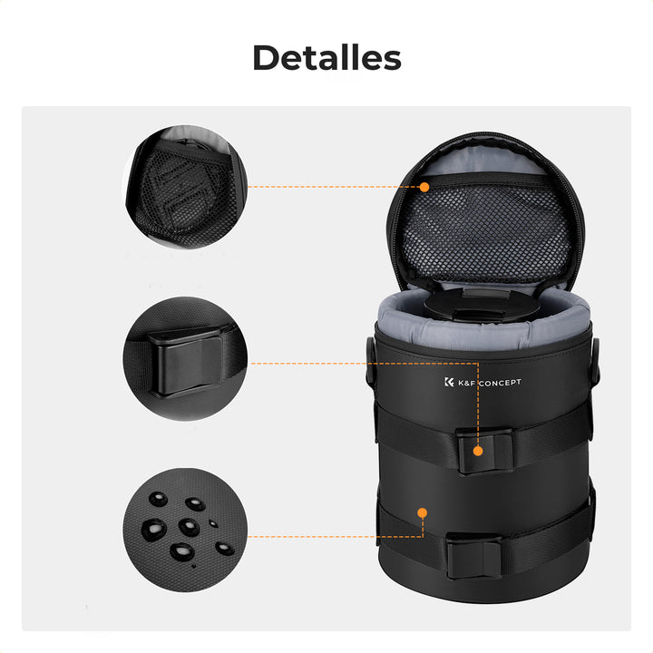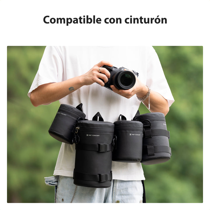 El K&F Concept KF13.202 Talla L es el estuche ideal para fotógrafos y videógrafos que buscan proteger sus lentes sin sacrificar practicidad ni estilo. Fabricado con materiales de alta calidad, este estuche impermeable está diseñado para resistir impactos, caídas, humedad y polvo, asegurando que tus lentes permanezcan siempre en perfecto estado.