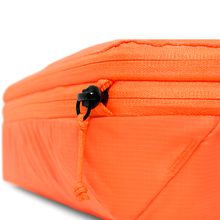 Con solo 144 g de peso, este estuche no agrega carga innecesaria. Fabricado en ripstop 70D reciclado y resistente al agua, es ideal para proteger tu equipo en ambientes exigentes. El acabado “self-healing” permite que pequeñas abrasiones desaparezcan, manteniendo el estuche impecable. Además, el color Raw sin teñir contribuye al ahorro de agua y energía durante la producción.