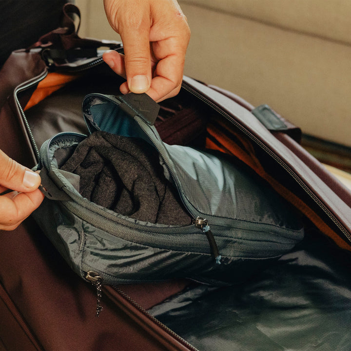 Con una capacidad que va de 4.5L a 9L, puedes ajustar su volumen dependiendo del día: desde una producción rápida en estudio, hasta un viaje de varios días. El cierre de compresión mantiene todo compacto, y el divisor interno ayuda a separar ropa limpia de la usada o equipo delicado de accesorios utilitarios.