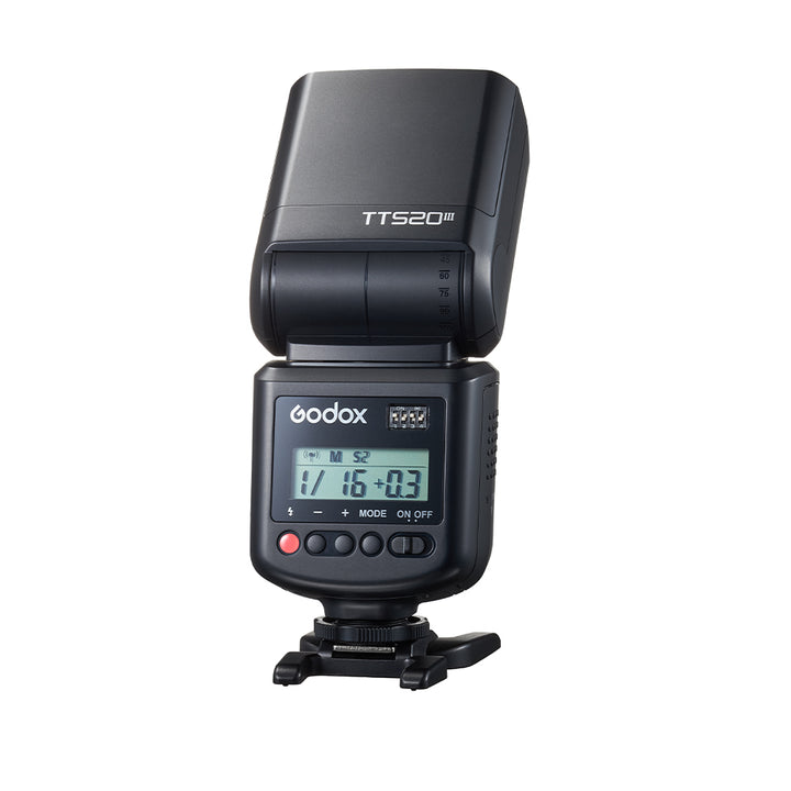 Gracias a su zapata de contacto único, el TT520III es compatible con Canon, Sony, Nikon, Panasonic, Fujifilm y Olympus, lo que lo hace una opción accesible para múltiples sistemas. Su pantalla trasera clara y moderna permite visualizar configuraciones rápidamente, incluso en condiciones de poca luz.