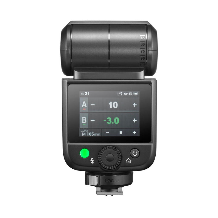 Su interfaz con pantalla táctil de 2 pulgadas facilita cambiar modos, ajustar potencia o revisar el estado de la batería. Su menú es simple, ideal para fotógrafos experimentados o quienes están migrando de un flash básico.