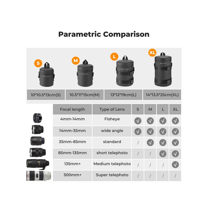 Es práctica, ligera y fácil de transportar. El diseño vertical permite aprovechar mejor el espacio en tu mochila o maleta, y su forma cilíndrica adapta lentes de diferentes alturas y diámetros, dependiendo del tamaño elegido.