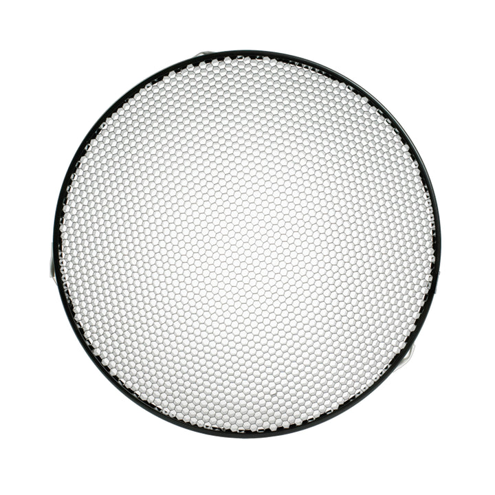 Este grid, también conocido como panal o honeycomb, reduce el ángulo de dispersión de la luz del reflector a solo 10°, permitiendo crear haces estrechos y dramáticos que enfatizan áreas específicas de la escena. Es ideal para retratos con carácter, efectos teatrales o para separar visualmente al sujeto del fondo mediante una luz puntual.