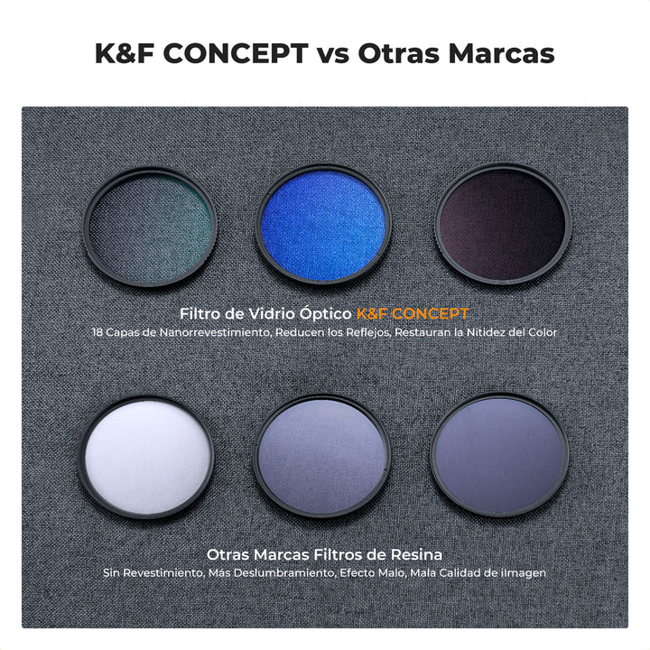 Cada filtro está fabricado con cristal óptico japonés para máxima claridad y revestimiento Nano multicapa que reduce reflejos, repele el agua, el polvo y la grasa. El anillo de aluminio anodizado ultrafino evita viñeteo y facilita la instalación, asegurando compatibilidad con la mayoría de lentes de 82mm.