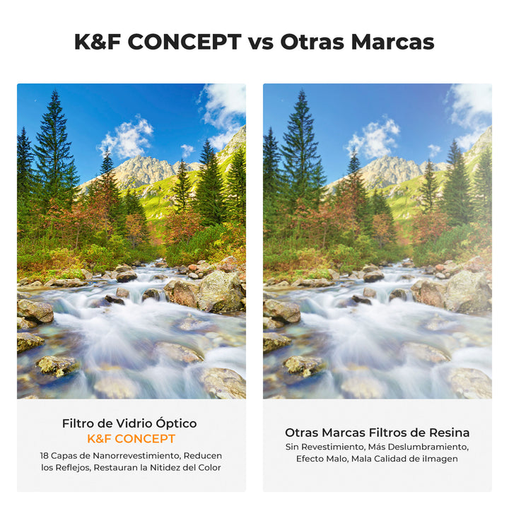 Su anillo de ajuste en aluminio te permite controlar la intensidad del efecto con un giro suave, mientras su construcción óptica japonesa multicapa garantiza fidelidad de color y evita el efecto fantasma o halos de luz. Ideal para fotografía de paisajes, arquitectura o contenido de video con iluminación natural.