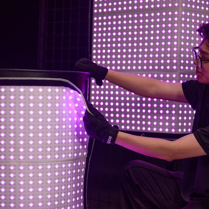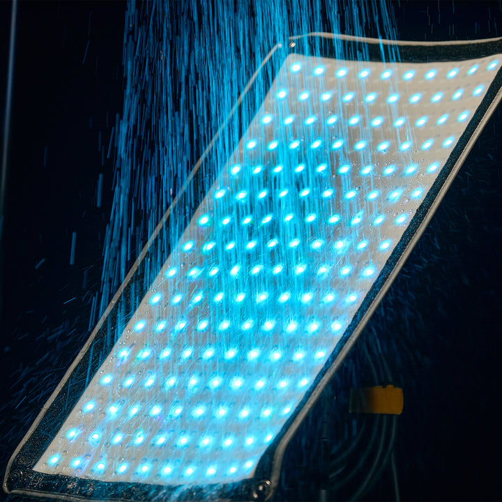 Su estructura flexible permite doblarlo y ajustarlo a superficies curvas, techos, esquinas o fondos irregulares. Además, el panel y su controlador tienen certificación IP54, ofreciendo protección contra polvo y salpicaduras de agua. Perfecto para locaciones exteriores.
