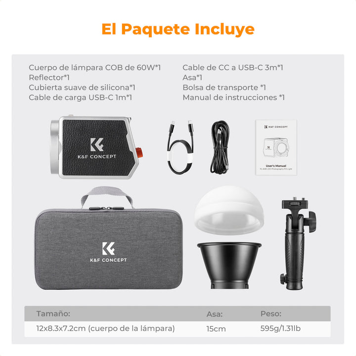 La Lámpara LED Bicolor K&F Concept PL60B 60W combina potencia, portabilidad y tecnología inteligente en un diseño compacto pensado para creadores exigentes. Con solo 595 g de peso y dimensiones de 12 × 8.3 × 7.2 cm, esta luz es ideal para sesiones móviles, grabaciones en exteriores o sets reducidos. Su estuche de transporte incluido permite llevar todos los accesorios de forma organizada, facilitando un flujo de trabajo ligero y eficiente.