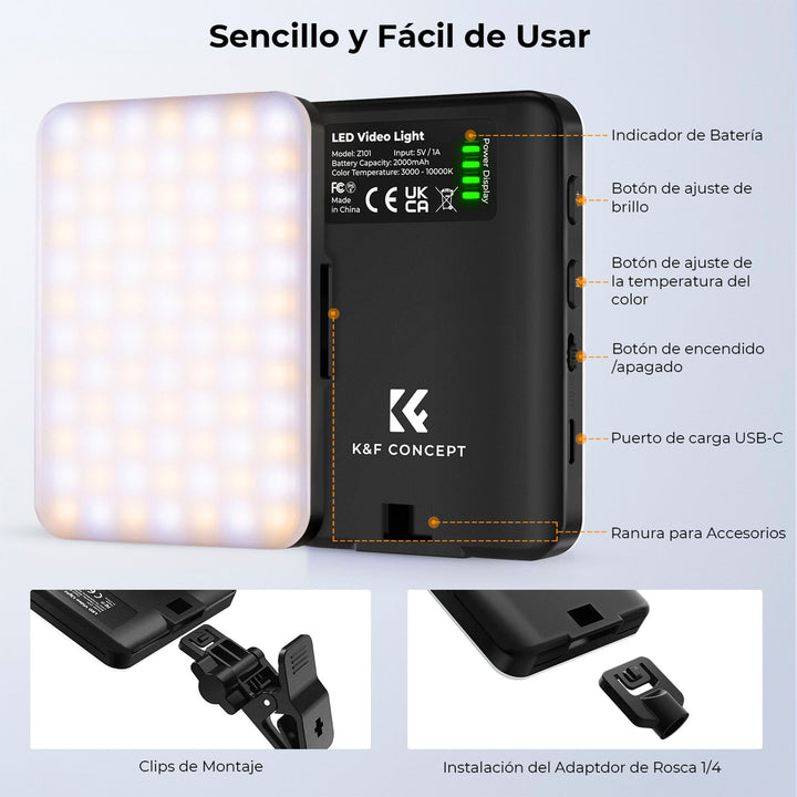 La Lámpara LED K&F Concept Bicolor con Clip Ajustable combina potencia, versatilidad y diseño compacto para ofrecerte la luz perfecta en cualquier situación. Su clip universal permite fijarla fácilmente a celulares, laptops, tablets, cámaras o tripies, convirtiéndola en una herramienta imprescindible para fotografía, video, streaming, videollamadas o grabaciones en exteriores.
