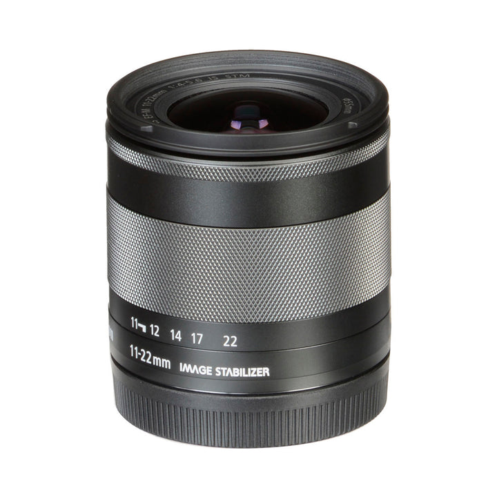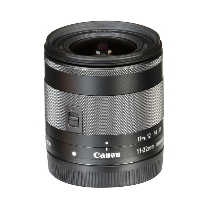 El Canon EF-M 11-22mm f/4-5.6 IS STM es un lente zoom compacto ideal para cámaras sin espejo de la serie EOS M. Su rango de distancia focal equivalente a 18-35mm en formato completo lo convierte en una opción perfecta para paisajes, interiores, arquitectura y vlogs.