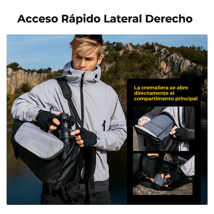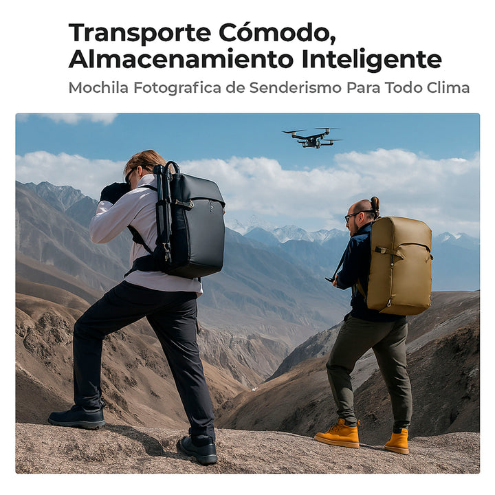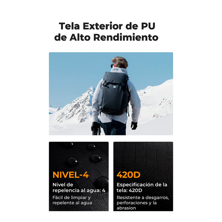 Fabricada con materiales de alta calidad, la Star Wander01 30L es impermeable, resistente al polvo y fácil de limpiar. Su exterior splash-proof mantiene tu equipo protegido de la lluvia ligera y la suciedad, mientras que su estructura duradera soporta el uso intensivo del día a día. Perfecta para fotógrafos de aventura, videógrafos de exteriores o creadores en constante movimiento.