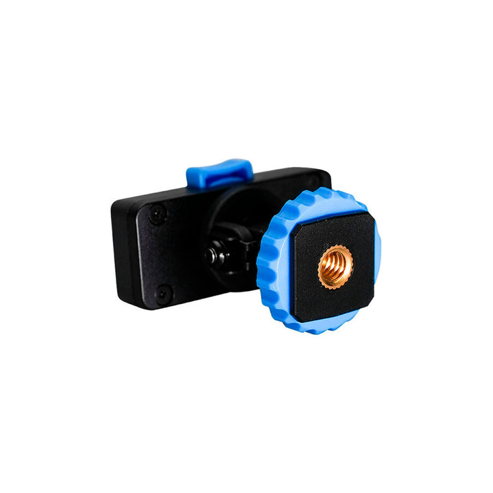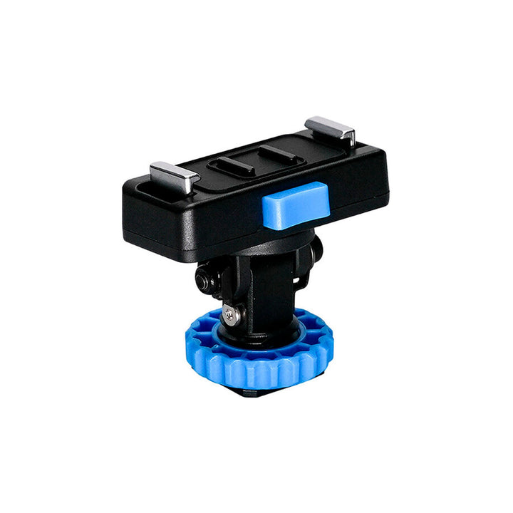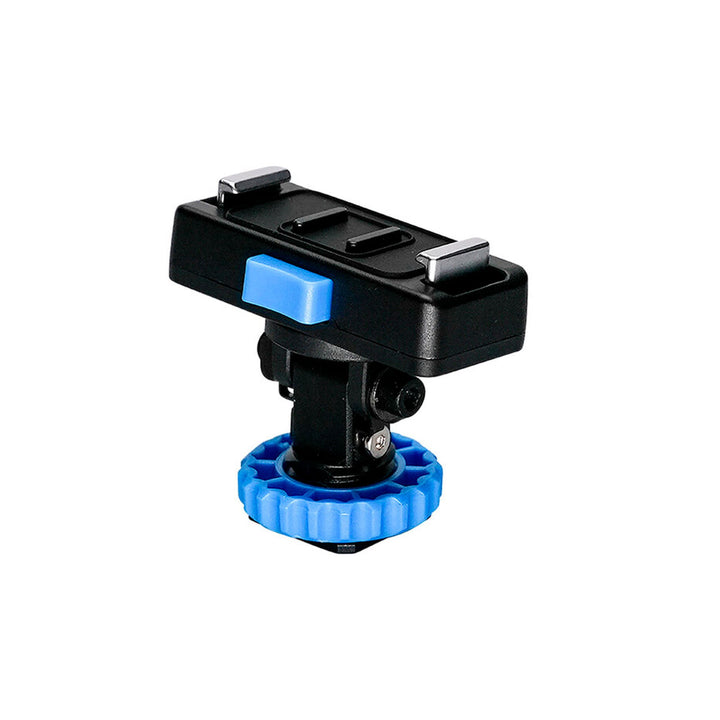 Incluye un adaptador de zapata con seguro para montaje directamente en cámara, además de una rosca 1/4"-20 para usarlo con tripiés, soportes o brazos articulados.