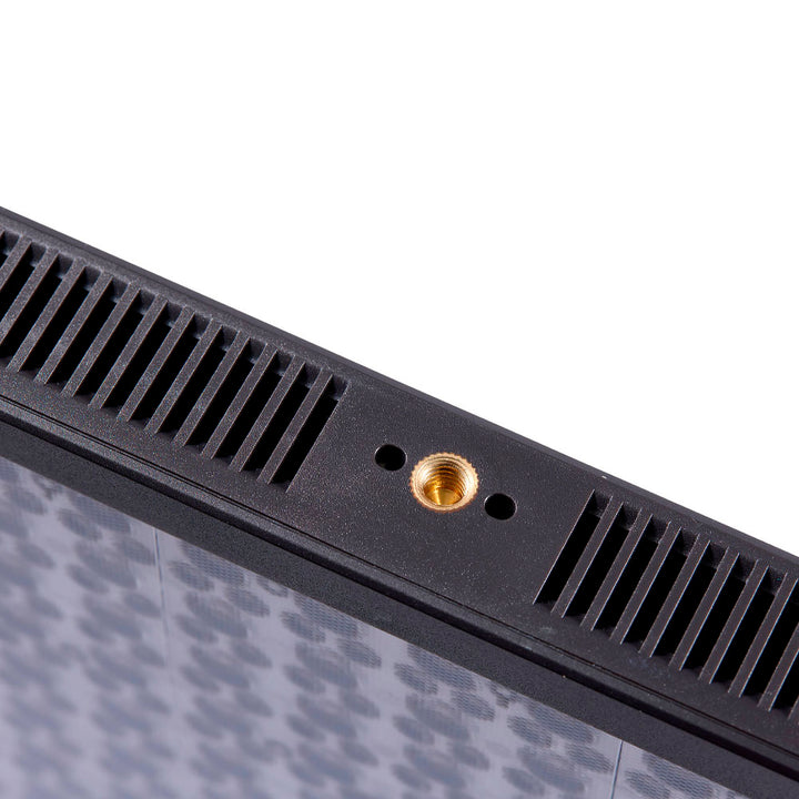 El panel también incluye un adaptador para montarlo en tripies, rieles o soportes gracias a su diseño pensado para movilidad y eficiencia.