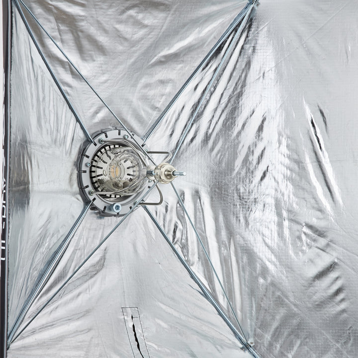 Su revestimiento interior en plata reflectiva ayuda a aprovechar al máximo la potencia de tus flashes o luces LED. Logra una iluminación intensa, sin perder suavidad, ideal para sujetos principales o fondos bien controlados.