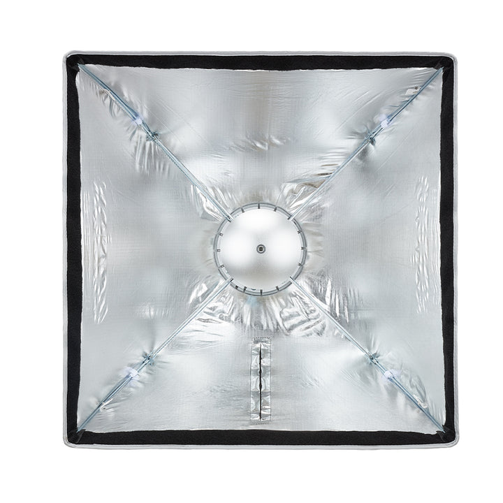 El interior plateado reflectante potencia la luz de tu equipo sin generar sombras duras. Incluye un difusor interno, difusor frontal y un deflector removible que puede transformar el softbox en un beauty dish, ideal para retratos con un look más punchy.