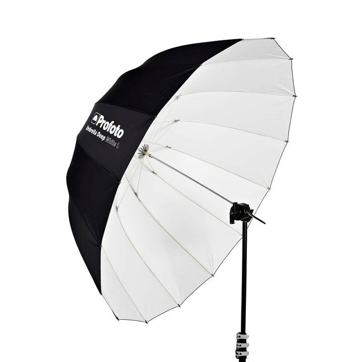 La sombrilla parabólica Profoto está hecha de materiales resistentes al calor y los elementos metálicos tienen un tratamiento superficial para evitar la oxidación y la decoloración. Además, viene con una bolsa de transporte de tela para viajar.